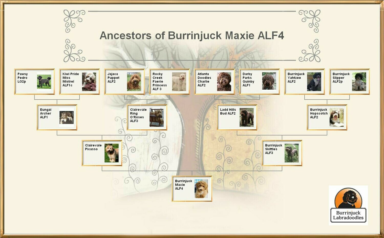 A a poster that show-cases your dog's family tree. Perhaps you will see some traits that are passed on down the line. In any case, it sure is nice, knowing some background into your puppy's heritage. You will receive both a PDF file and a JPEG file for your convenience.