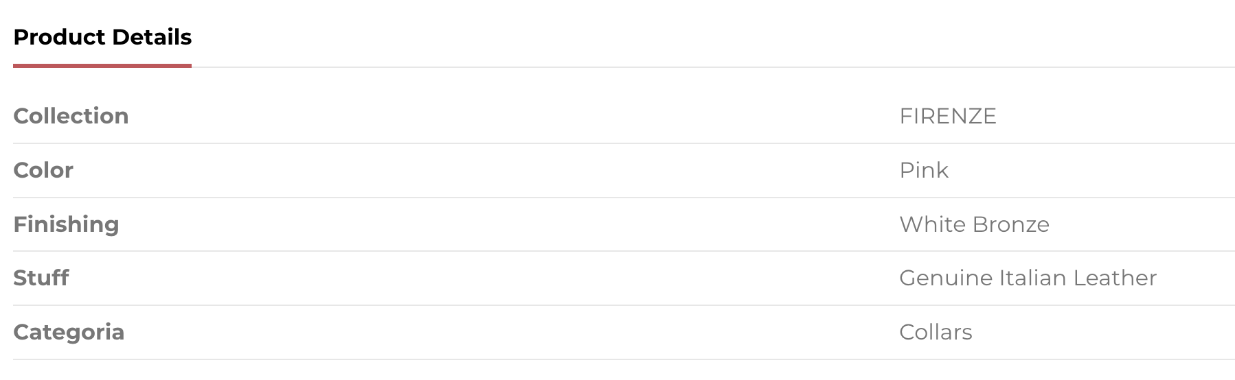 Dog collar of the Firenze collection in genuine Italian pink leather with white bronze finishing.