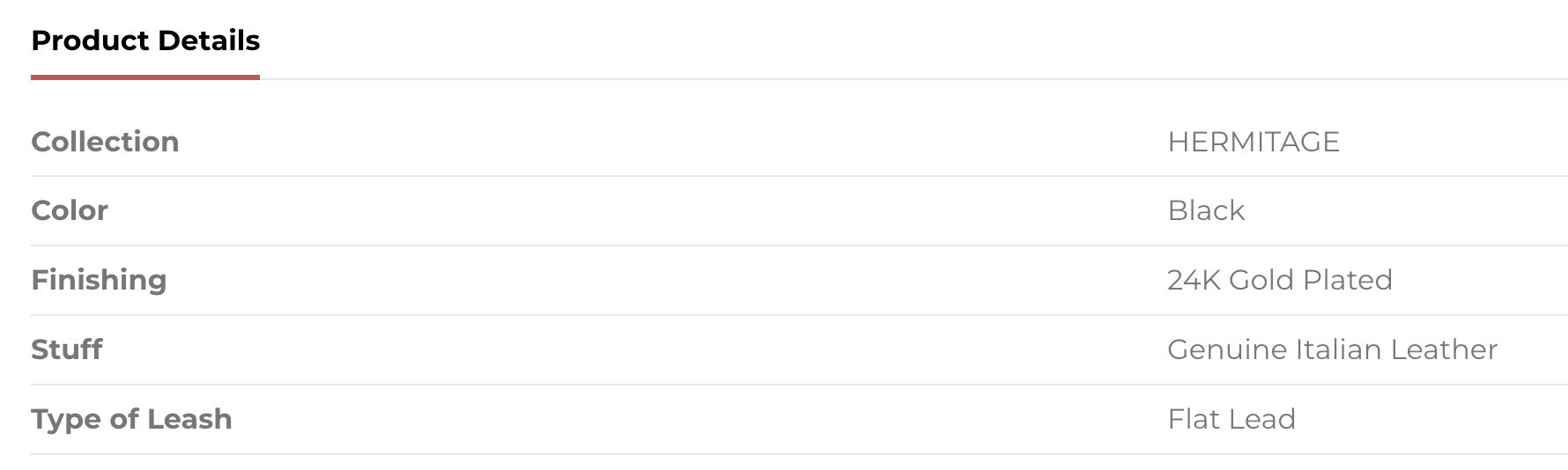 Dog leash of the Hermitage collection in genuine Italian black/tan leather with 24K gold plated finishing.