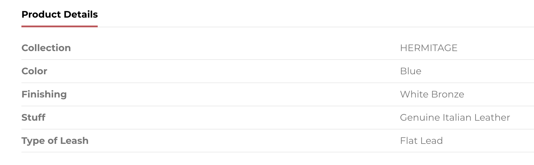Dog leash of the Hermitage collection in genuine Italian blue/beige leather with white bronze finishing.