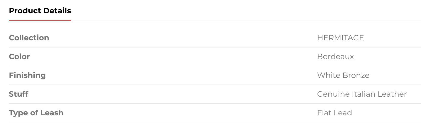 Dog leash of the Hermitage collection in genuine Italian burgundy /beige leather with white bronze finishing.